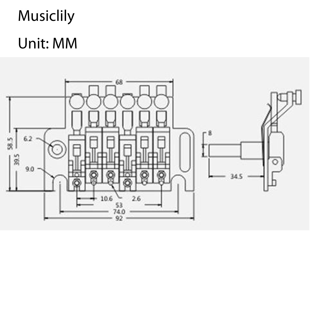 M211 Бридж тремоло, с топ-локом, хром, Musiclily