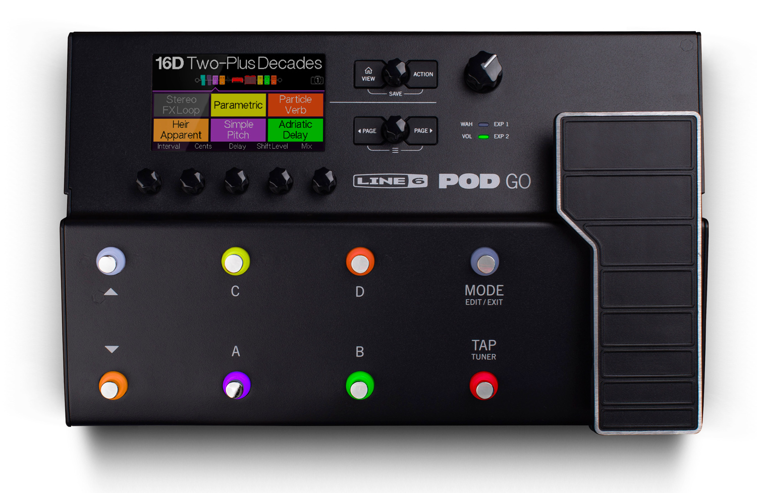 Бесплатное приложение POD Go Edit позволяет редактировать и сохранять пресеты. Режим Pedal Edit Mode дает возможность редактировать любые параметры без участия рук.