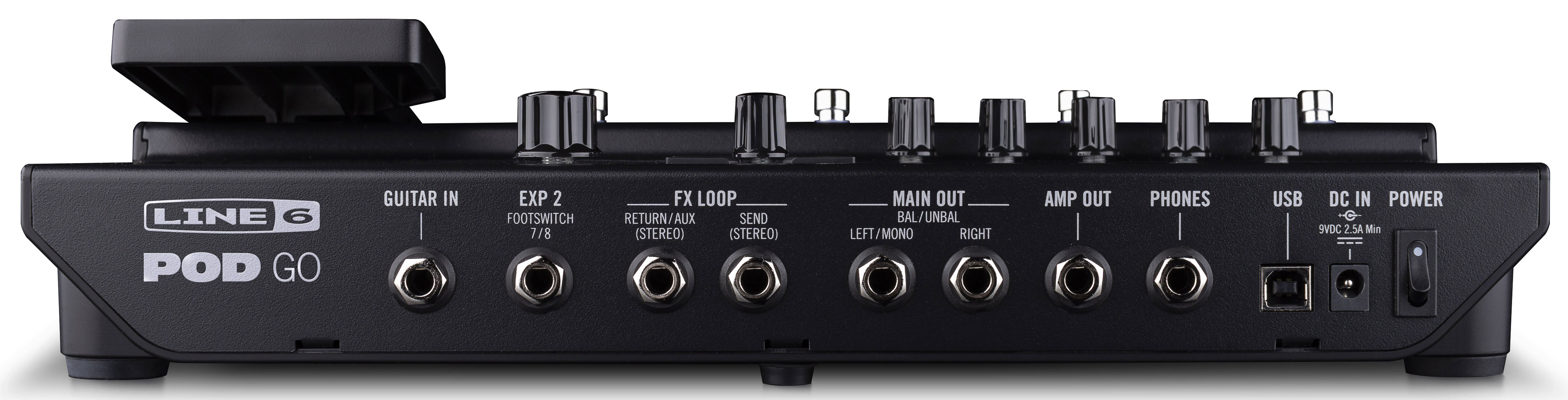 Возможности коммутации включают петлю эффектов, разъем для подключения педали экспрессии/футсвитча. POD® Go можно также использовать как USB аудио интерфейс.