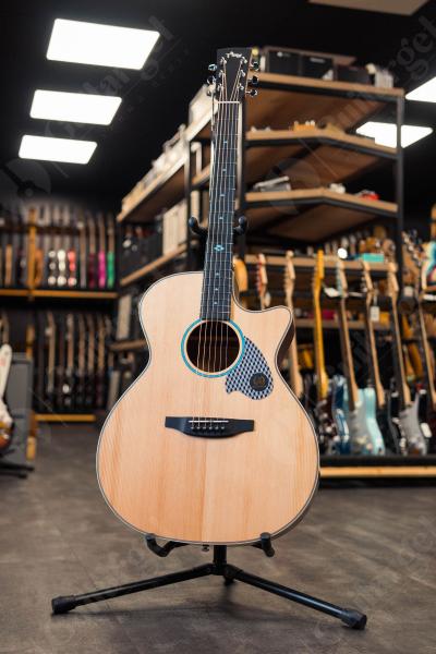 Модель Tyma TG-5 является одной из моделей новой серии гитар Tyma 2.0. Верхняя дека данной модели выполнена из массива ситхинской ели, которая обладает ярким, звонким и громким звучанием. Задняя дека и обечайка изготовлены из африканского сапеле, которое придает мягкость, бархатистость, обволакивая и делая более богатым и насыщенным звонкое звучание. Удобный корпус Grand Auditorium подчеркивает средние частоты звука, более универсален и позволяет экспериментировать с разными жанрами музыки. Высококачественная фурнитура, прозрачная защитная наклейка, утепленный чехол и набор аксессуаров добавляют интерес к данной модели.