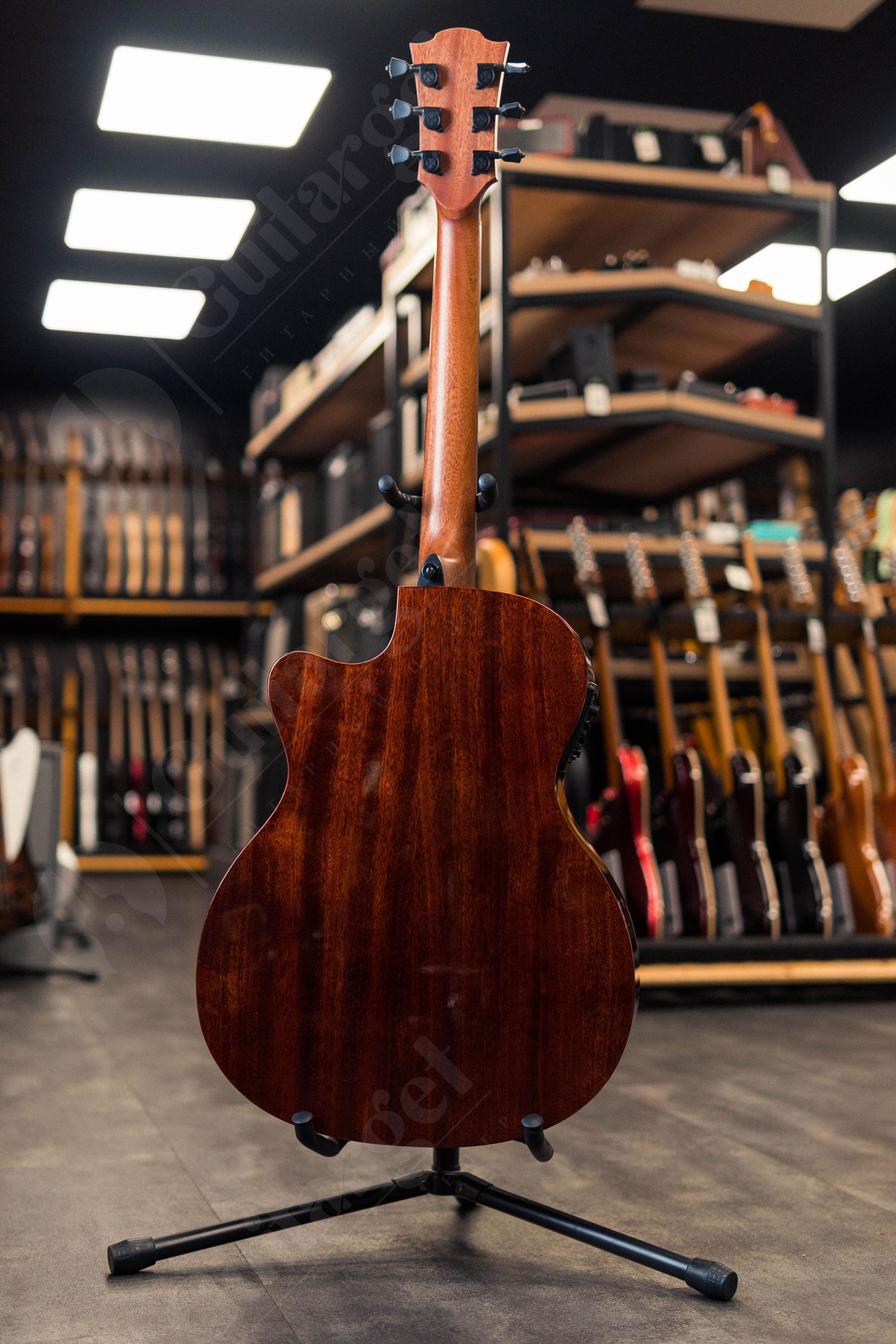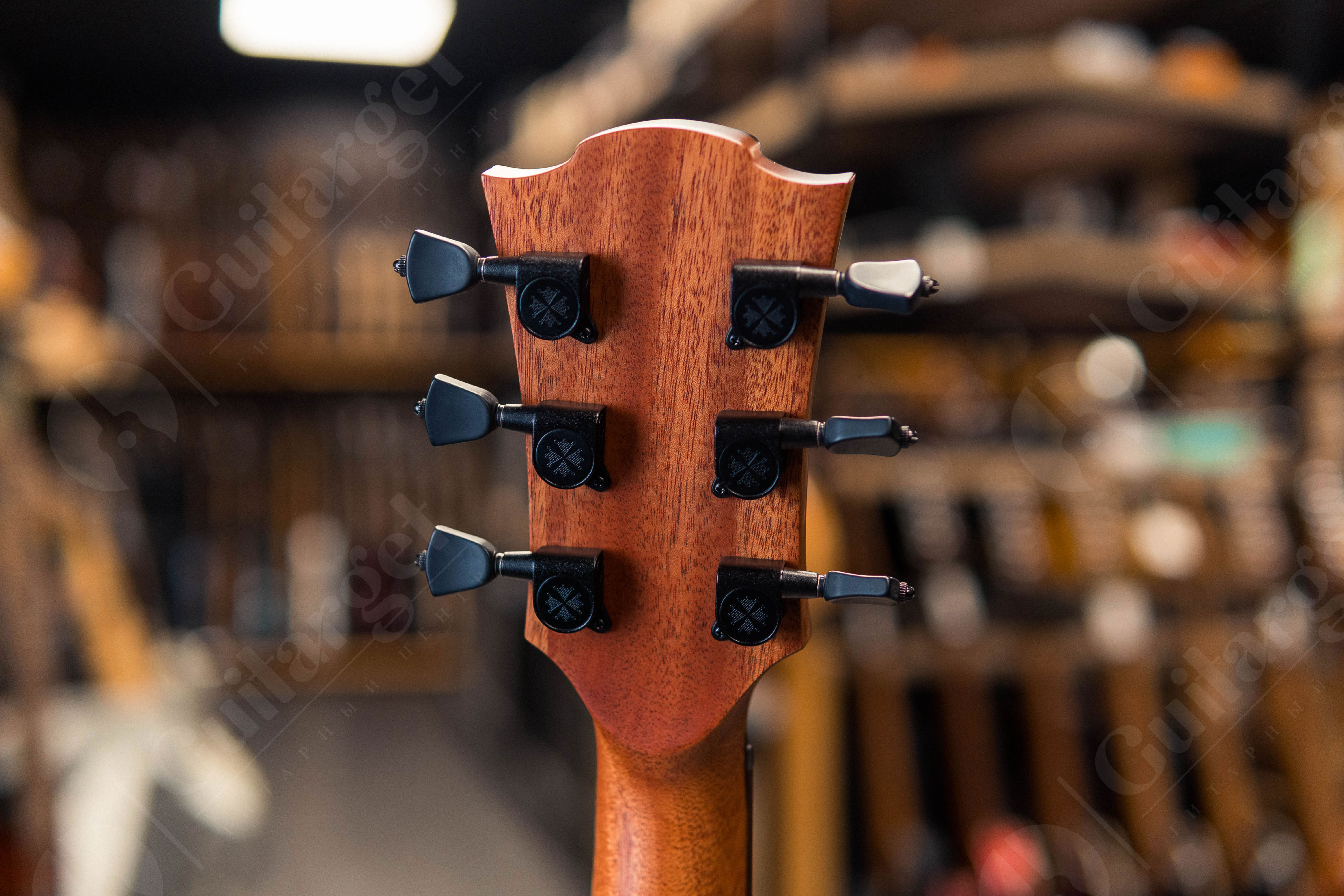 Голова грифа: браунвуд + кленовая вставка с лого