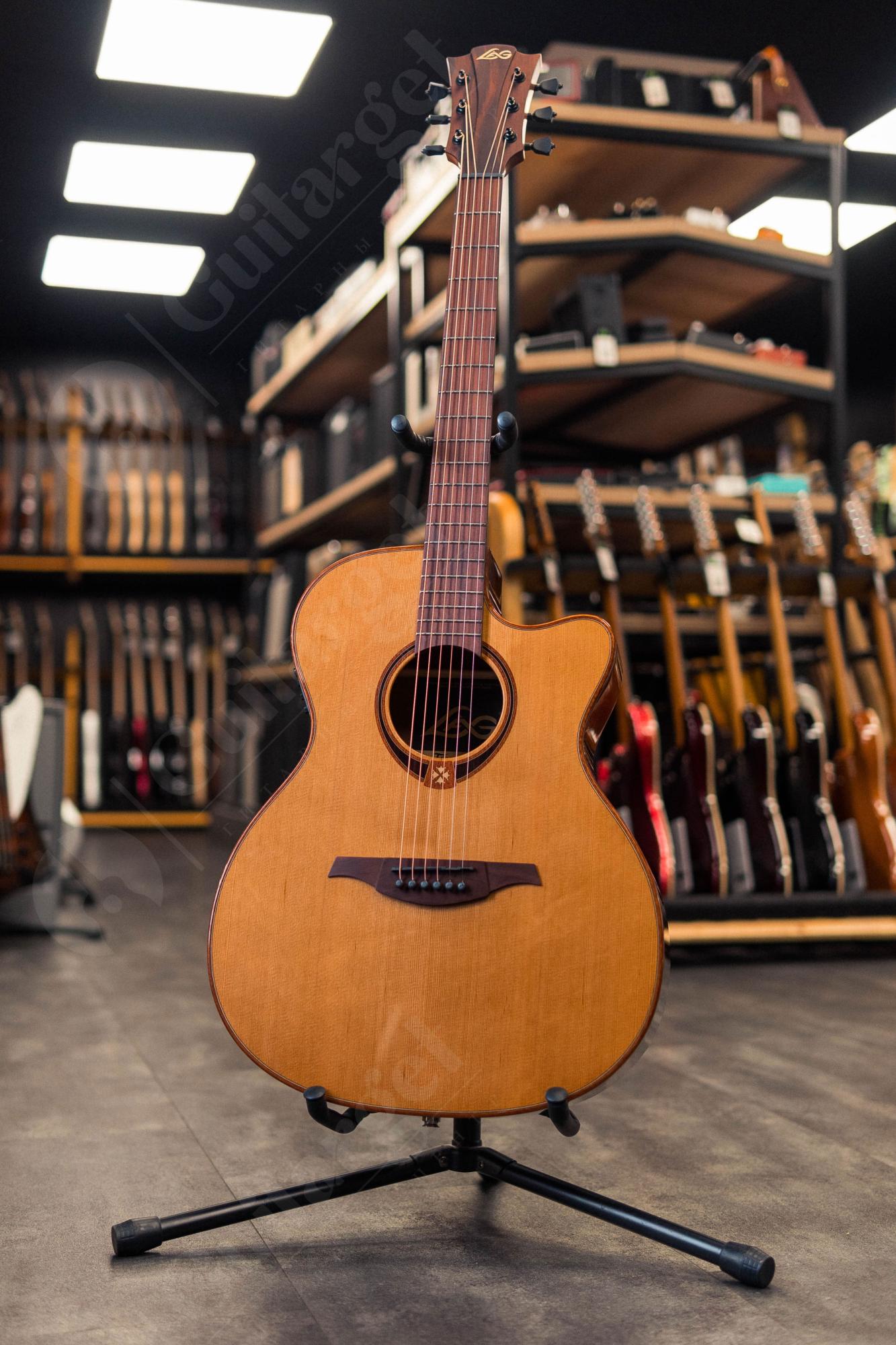 Линейка 118 обладает самым широким модельным рядом и разнообразной палитрой цветов, что помогает удовлетворить любые требования музыкантов в поисках универсального инструмента. Сочетание красного кедра и африканского сапеле LAG GLA T118ACE обеспечивает теплое, глубокое и сбалансированное звучание инструмента.