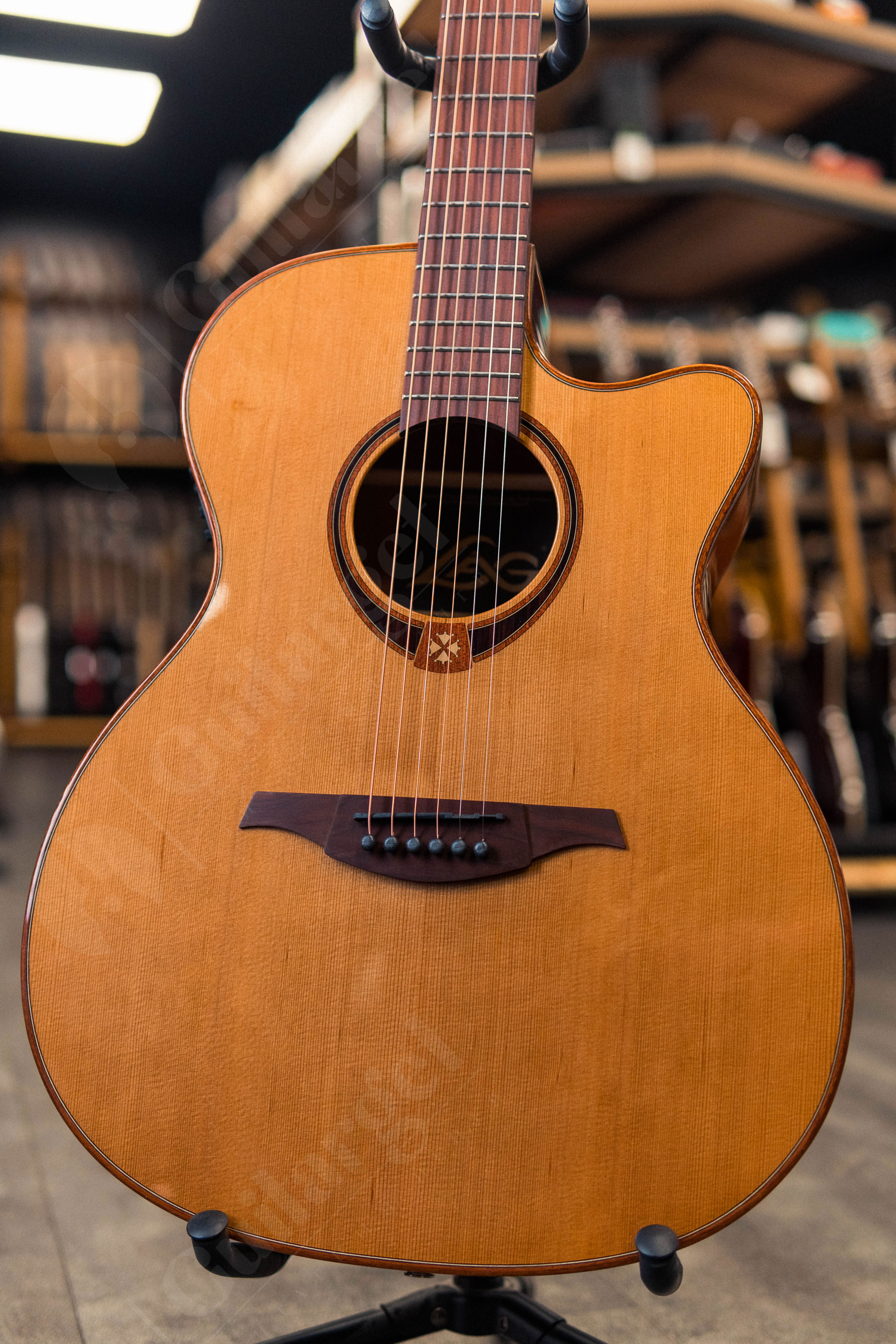 Все гитары LAG имеют стильный фирменный дизайн. Как знак соединения с Францией и ее историей, гитары LAG носят окситанский крест, вплетенный в розетку.