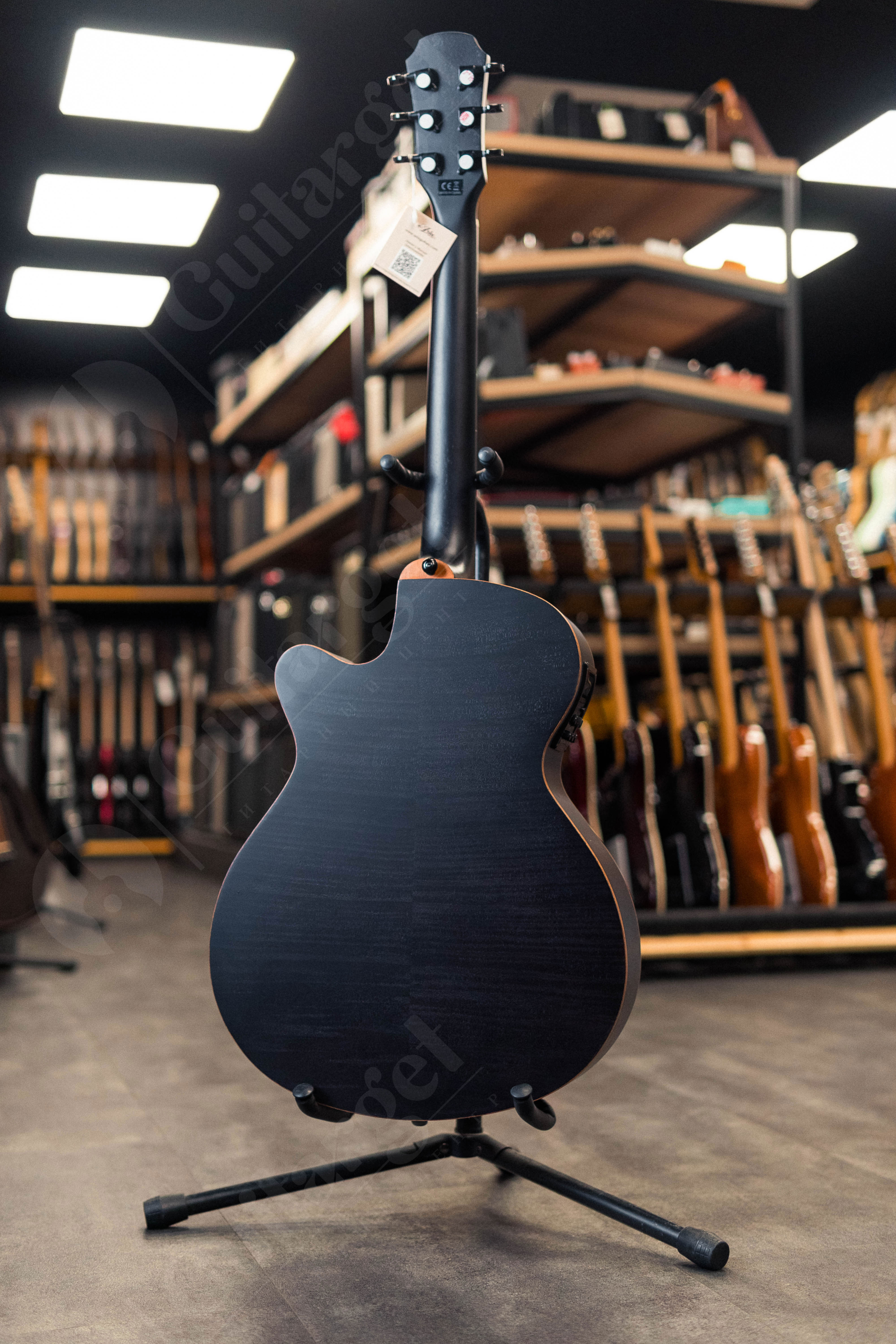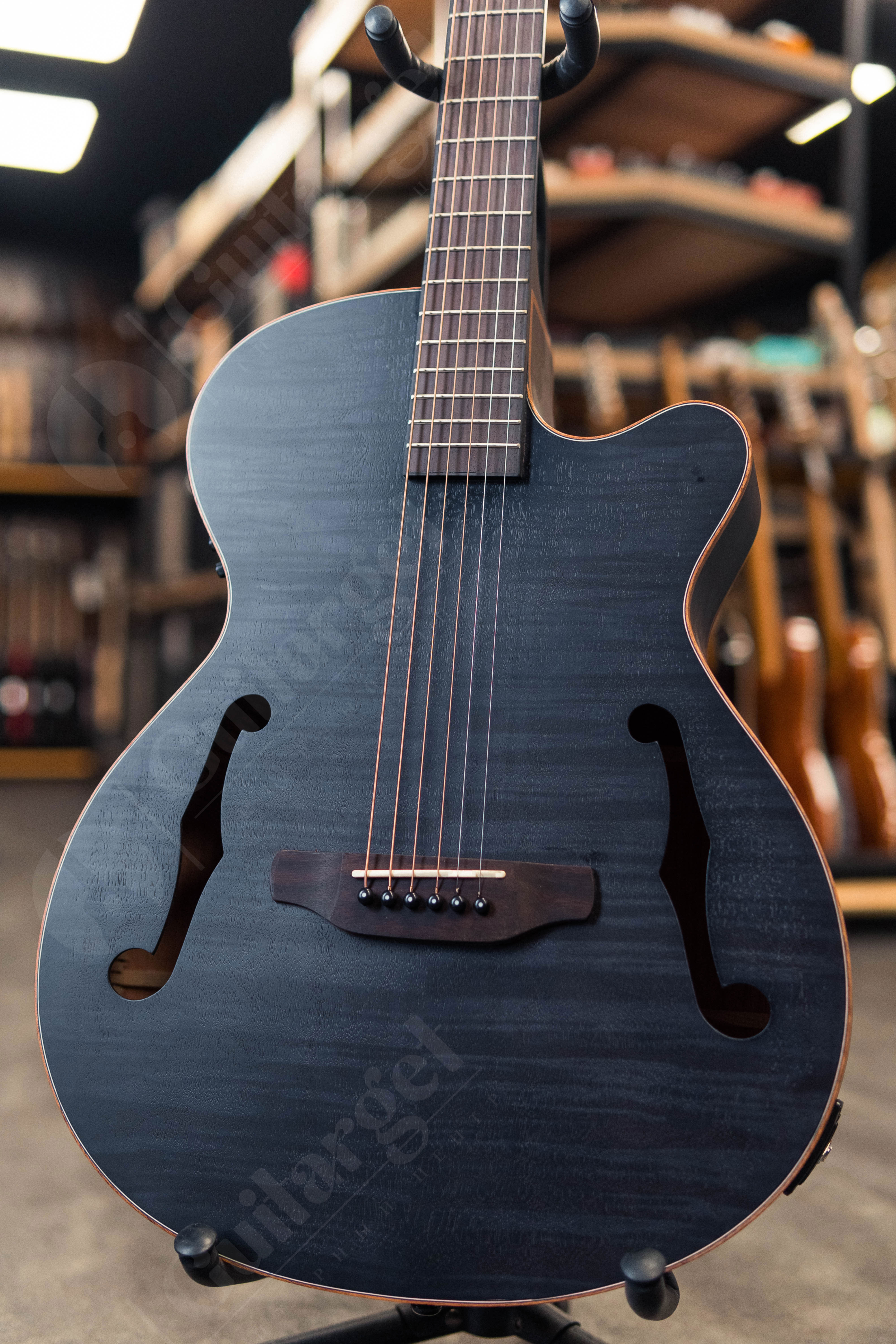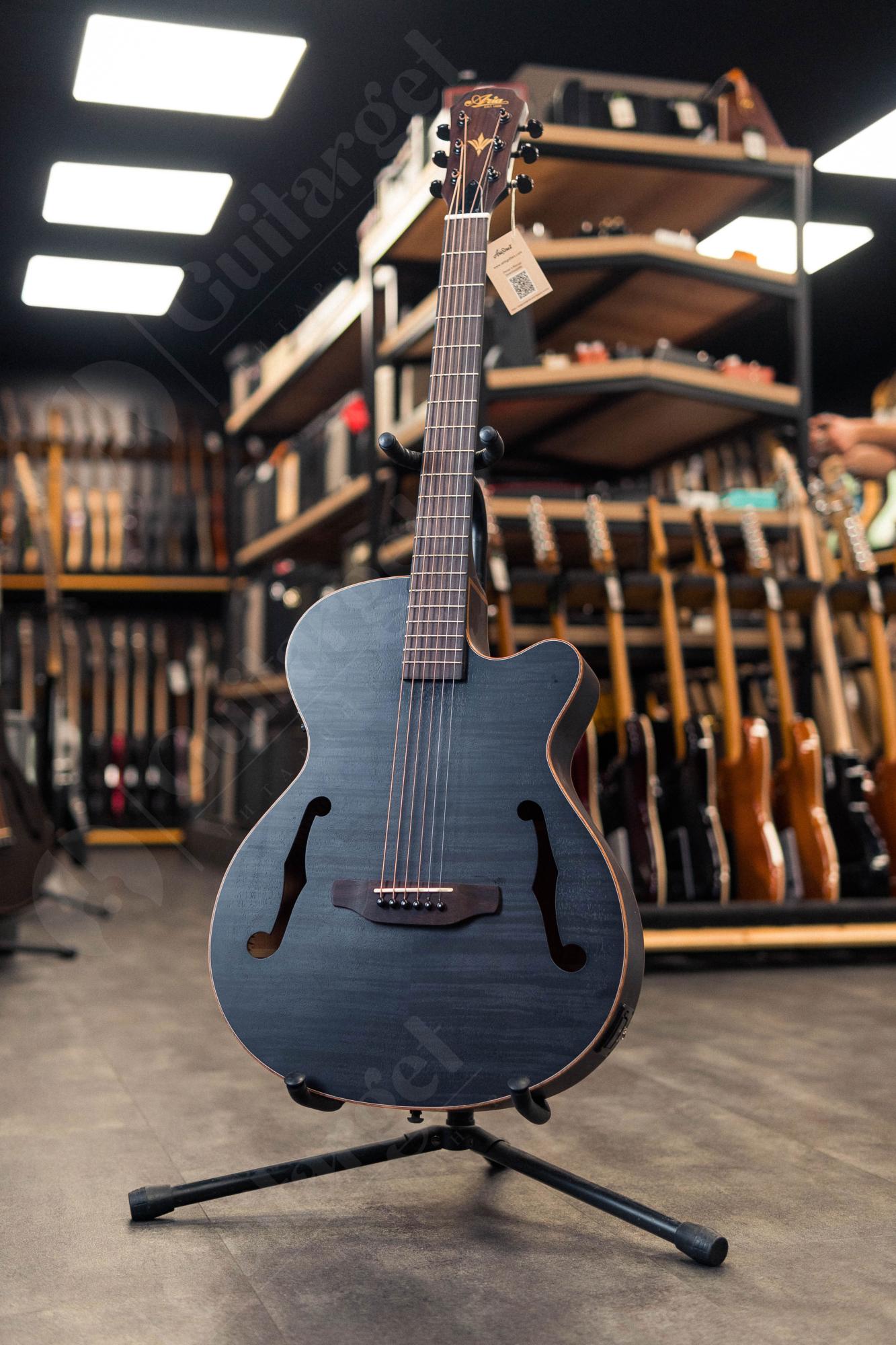 ARIA FET-F2 STBK – электроакустическая шестиструнная гитара с катавеем. Особенность этой гитары – вместо резонаторного отверстия (розетки) на корпусе присутствуют два винтажных выреза в форме буквы f, которые можно безбоязненно заклеить скотчем для устранения проблемы фидбэка. Акустически гитара звучит довольно негромко, что понравится тем, кто тихо поёт и не хочет раздражать окружающих. Ее можно использовать для аккомпанемента в самых разных стилях. У гитары матовое покрытие с открытыми порами, а также необходимые крепления для ремня. Входит в серию Elecord.