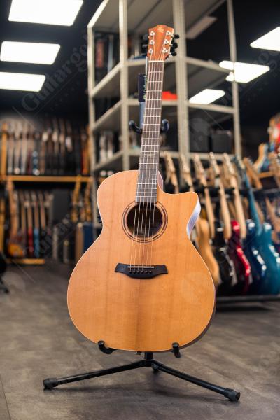 BATON ROUGE T22S/ACE – электроакустическая гитара с фирменным катавеем серии Auditorium. У нее прочная верхняя дека из массива немецкой ели с нижней декой и боковыми сторонами из огненного клена. Гриф также выполнен из клена, а накладка из сливы, бридж – сосна от BlackwoodTek. У гитары 20 ладов, верхний и нижний порожек выполнены из кости. Ширина верхнего порожка составляет 46 мм. Окантовка– кленовая. Используются струны Elixir, мензура – 630 мм. Колки – литые матовые хромированные с черными кнопками. Используется система звукоснимателей Baton Rouge BR2.1P.