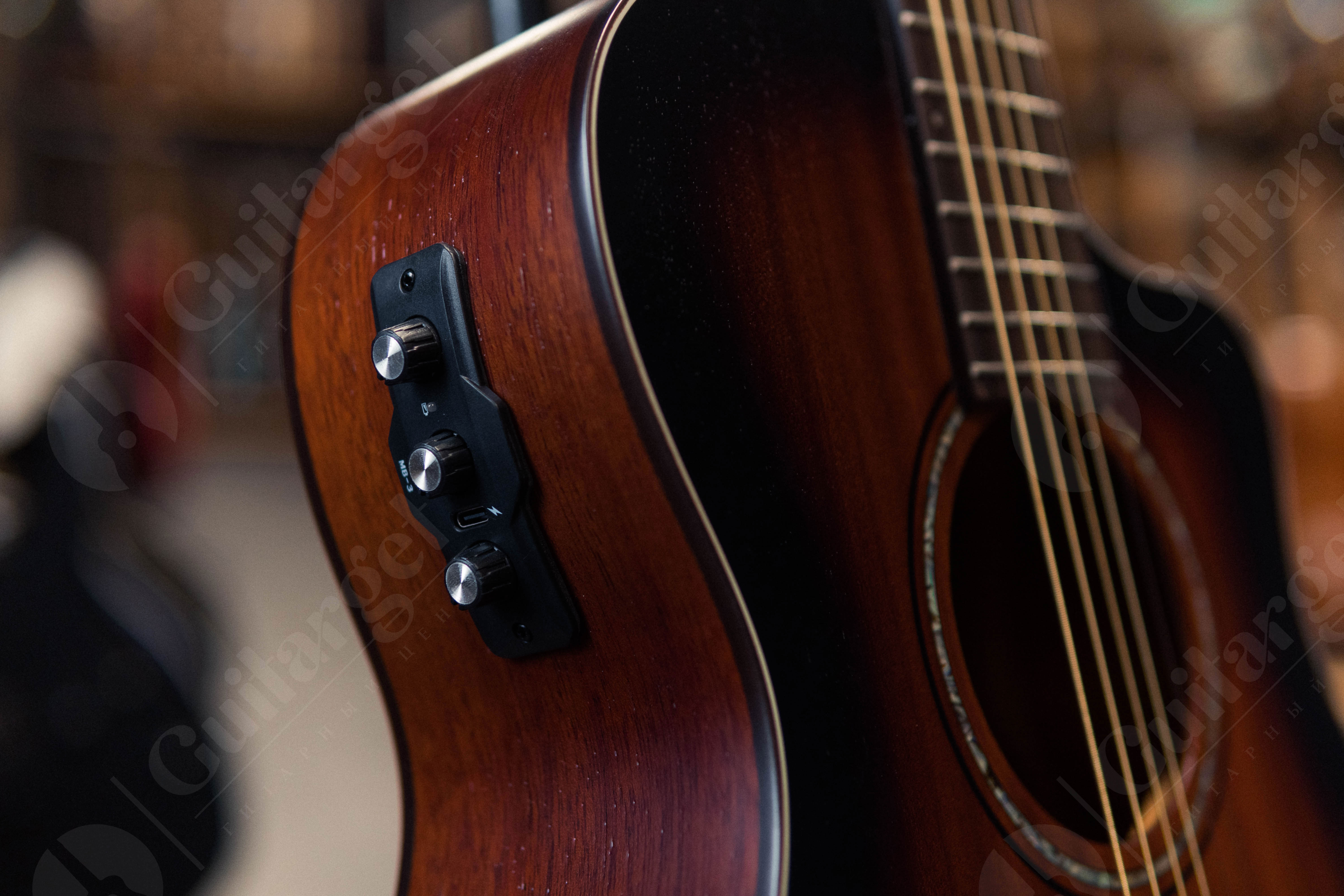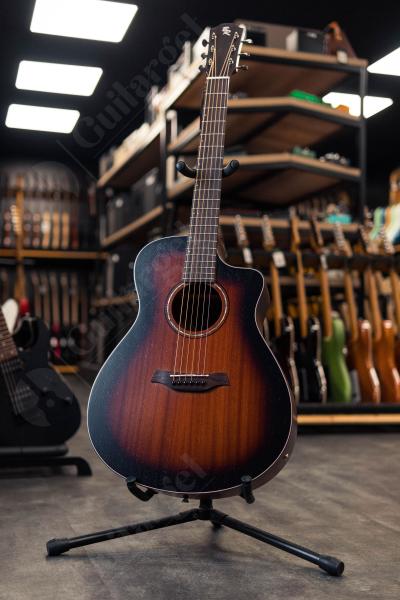 BATON ROUGE X11LM/FCE-MB – электроакустическая гитара в корпусе типа фолк с выезом, благодаря чему инструмент обладает сбалансированным звучанием и отлично подходит для детей и людей с небольшой комплекцией. Верхняя дека выполнена из махагона, задняя дека и обечайки – также из махагона. Данное сочетание материалов делает тембр гитары ярким и звонким. Гриф также сделан из махагона, накладка на гриф и сам бридж – из овангкола. У гитары 21 лад, а верхний и нижний порожек (46 мм) выполнены из материала Nubone: упрощенная разновидность материала TUSQ, которая лучше гасит вибрацию струн, лучше передает частоты и гармоники, увеличивает объем звука и обогащает тон.
