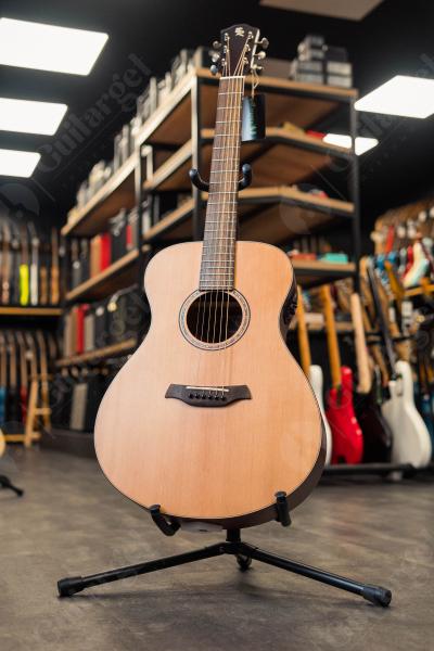 Верхняя дека выполнена из ели, задняя дека и обечайки – из красного дерева. Данное сочетание материалов делает тембр гитары ярким и звонким. Гриф также сделан из красного дерева, накладка на гриф и сам бридж – из овангкола. У гитары 21 лад, а верхний и нижний порожек (46 мм) выполнены из материала Nubone: упрощенная разновидность материала TUSQ, которая лучше гасит вибрацию струн, лучше передает частоты и гармоники, увеличивает объем звука и обогащает тон.