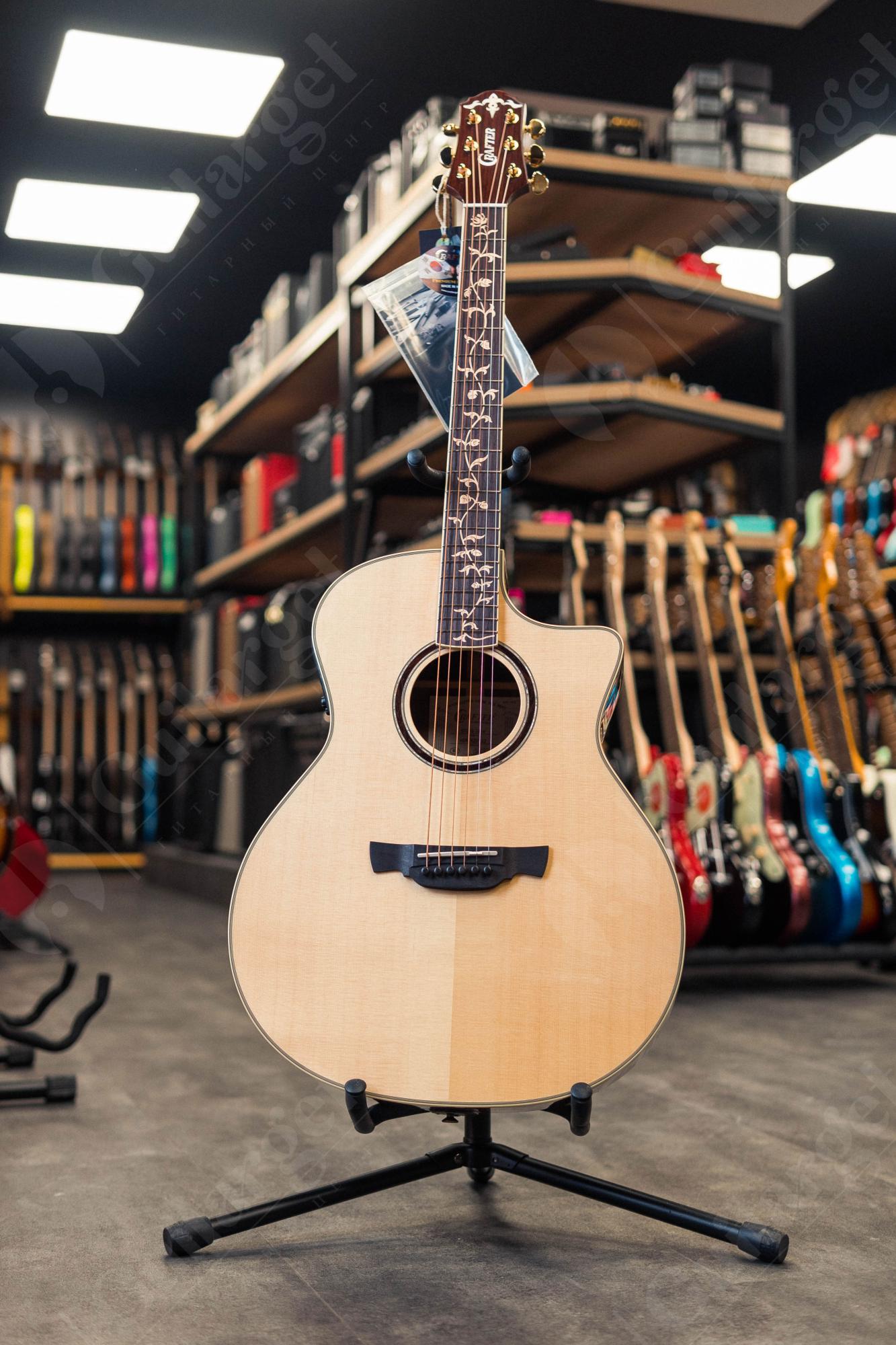 Гитара CRAFTER STG G-28ce имеет форму корпуса «Grand Auditorium», одну из самых популярных форм среди акустических гитар. Эти корпуса характеризуются несколько меньшим размером, чем дредноут, однако многие гитаристы считают их более удобными и сбалансированными по частотам, хотя и не таким громкими.