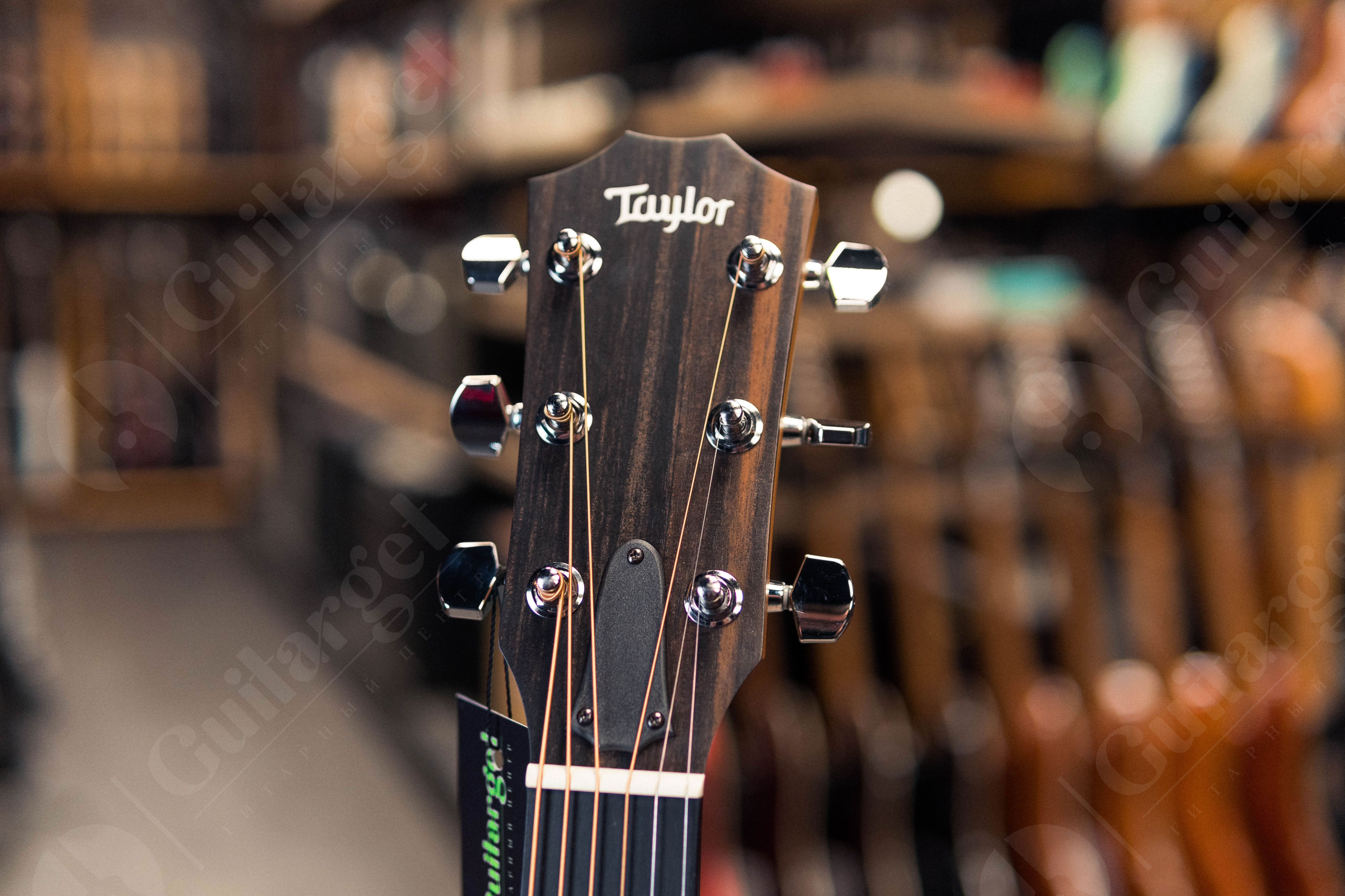Отличительные черты этой модели включают характерный для гитар Taylor тонкий гриф и комфортную ширину порожка 1 11/16 дюйма. Конструкция корпуса из многослойной древесины ореха обеспечивает стабильность инструмента и неприхотливость к изменению внешнего климата, а также придаёт гитаре эффектный внешний вид, а в сочетании с верхней декой из цельной древесины ситхинской ели это даёт великолепное, прекрасно сбалансированное звучание с широким динамическим диапазоном, которое будет только улучшаться с годами.