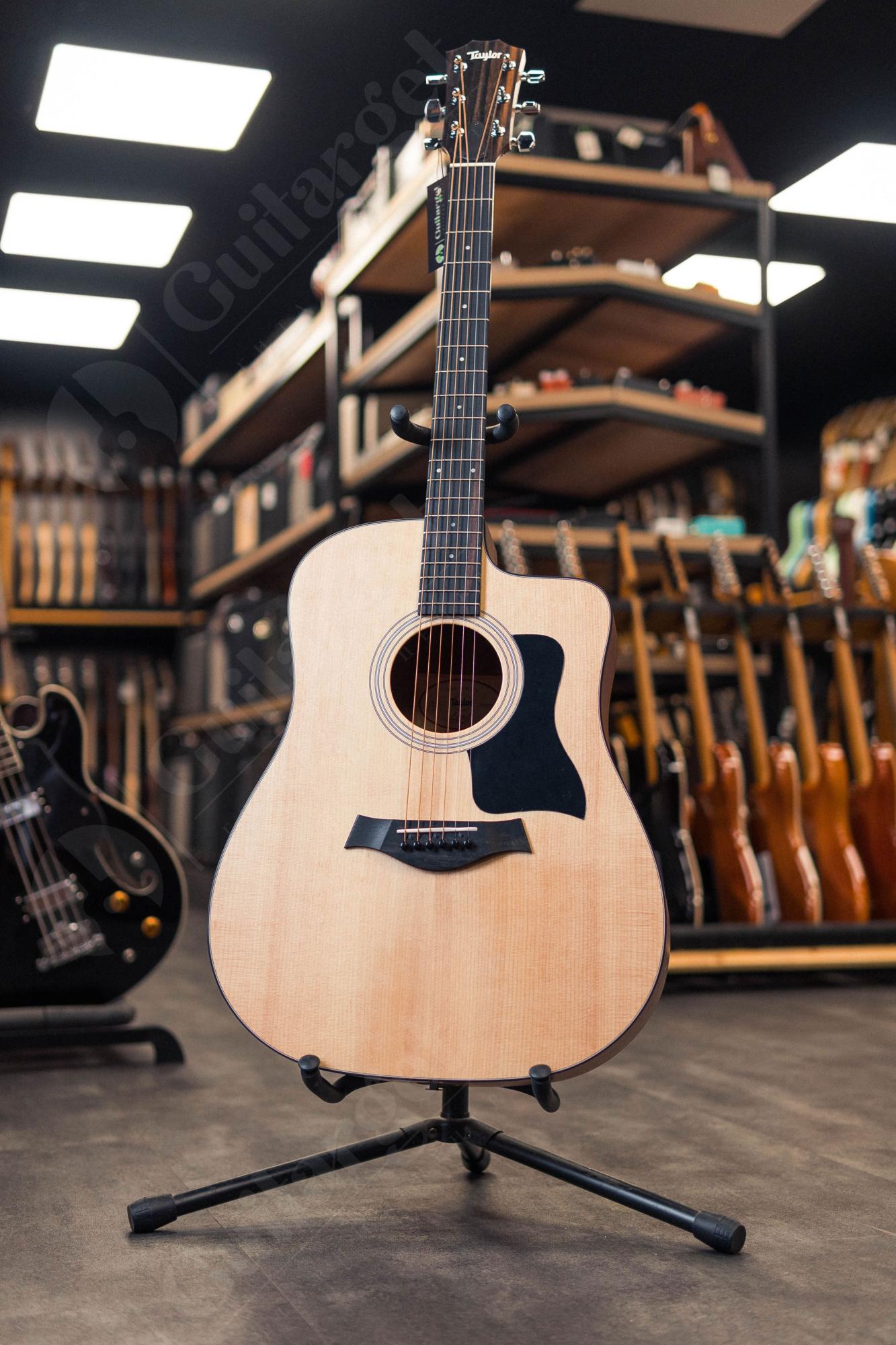 TAYLOR 110ce - электроакустическая гитара в корпусе дредноут из линейки "100 Series" с плавным венецианским вырезом, предоставляющим удобный доступ к верхним ладам, позволяя получить мощные, чёткие и чистые верхние частоты, которые делают соло яркими и эффектными.