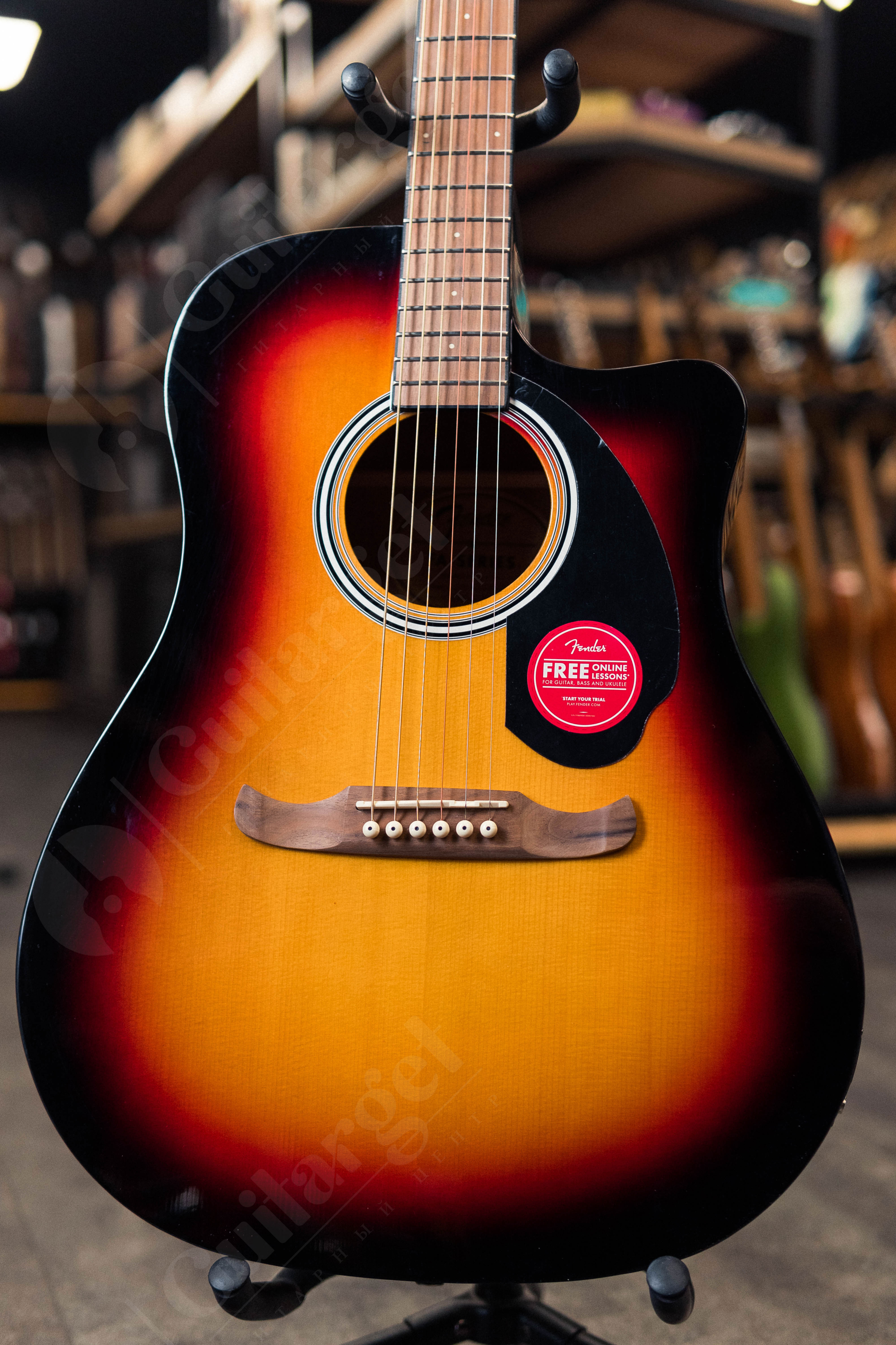 Электроакустическая гитара в корпусе дредноут от знаменитого американского бренда. Эта модель сочетает в себе элегантный стиль и характерное узнаваемое фендеровское звучание, при этом цена гитары весьма демократична. Корпус гитары выполнен из высококачественной ламинированной древесины: нижняя дека и обечайка из липы, верхняя дека – из ели. В сочетании с головой грифа современной формы и бриджем Viking это даёт инструмент с отличным, очень живым звуком, играть на котором легко и комфортно. Гриф – вклеенный, из древесины нато. Особенность представленной версии FENDER FA-125 – накладка из ореха. На грифе 20 ладов, инкрустированных точками. Гитара FA-125 придётся по вкусу как начинающим музыкантам, так и опытным. Модель представлена в элегантном натуральном цвете с глянцевой отделкой, контрастным однослойным черным пикгардом. Розетка оформлена характерными для акустических гитар сери FA кольцами.