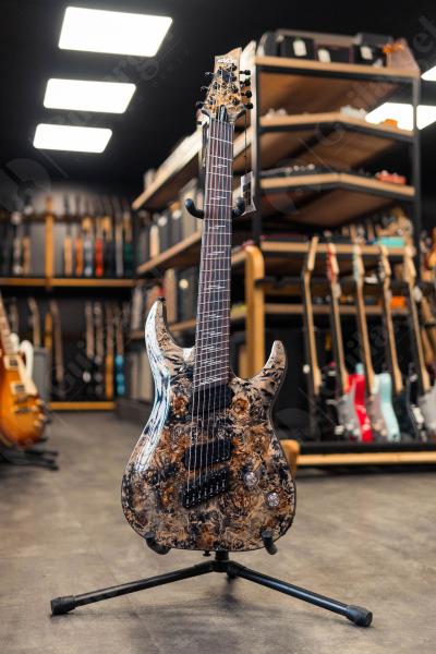 Корпус мультимензурной электрогитары SCHECTER OMEN ELITE-7 MS BCHB изготовлен из красного дерева с топом из капа. Гриф выполнен из клена с накладкой из палисандра.
