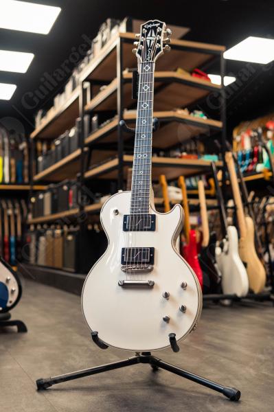 Данная гитара имеет белый цвет корпуса и грифа, что делает ее очень заметной на сцене и в студии. Гриф гитары имеет удобную форму, которая позволяет играть на ней часами без усталости.