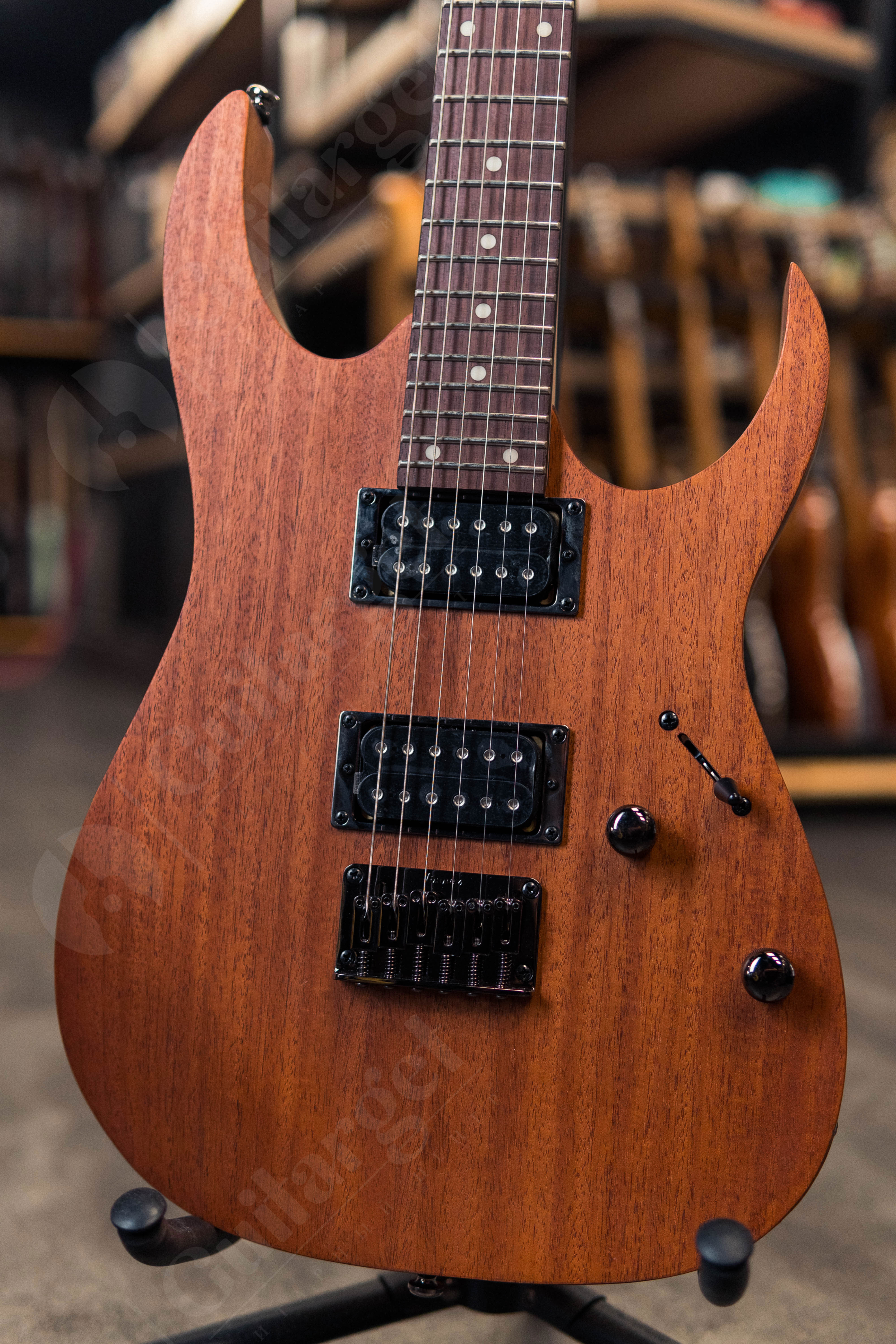 Ibanez RG421-MOL – шестиструнная электрогитара из линейки RG. Как все гитары этой серии, модель RG421 отличается впечатляющей многофункциональностью. Она позволяет добиться великолепного, очень чёткого и чистого звучания при игре скоростных соло, а также прекрасно подходит для извлечения густых, плотных риффов. При этом цена инструмента весьма демократична. Дека гитары имеет красивую элегантную форму, сделана из красного дерева. Гриф Wizard III - тонкий, низкопрофильный, при этом очень прочный, выполнен из клёна. Мензура 25,5 дюймов (648 миллиметров) даёт широкие возможности для импровизации. Накладка - палисандровая, с инкрустацией классическими белыми точками. Фиксированный бридж надёжно держит строй. Звукосниматели - два мощных пассивных хамбакера Quantum открытого типа c керамическими магнитами. Такие звукосниматели выдают мощные низкие частоты и усиленную середину, четкие и великолепно артикулированные верха. Переключатель - 5-позиционный. Для настройки звука предусмотрены регуляторы громкости и тембра. Представленная модель элегантно выглядит в натуральном цвете красного дерева с матовой отделкой, черными головой и фурнитурой. На гитаре установлены струны толщиной .010 - .046.