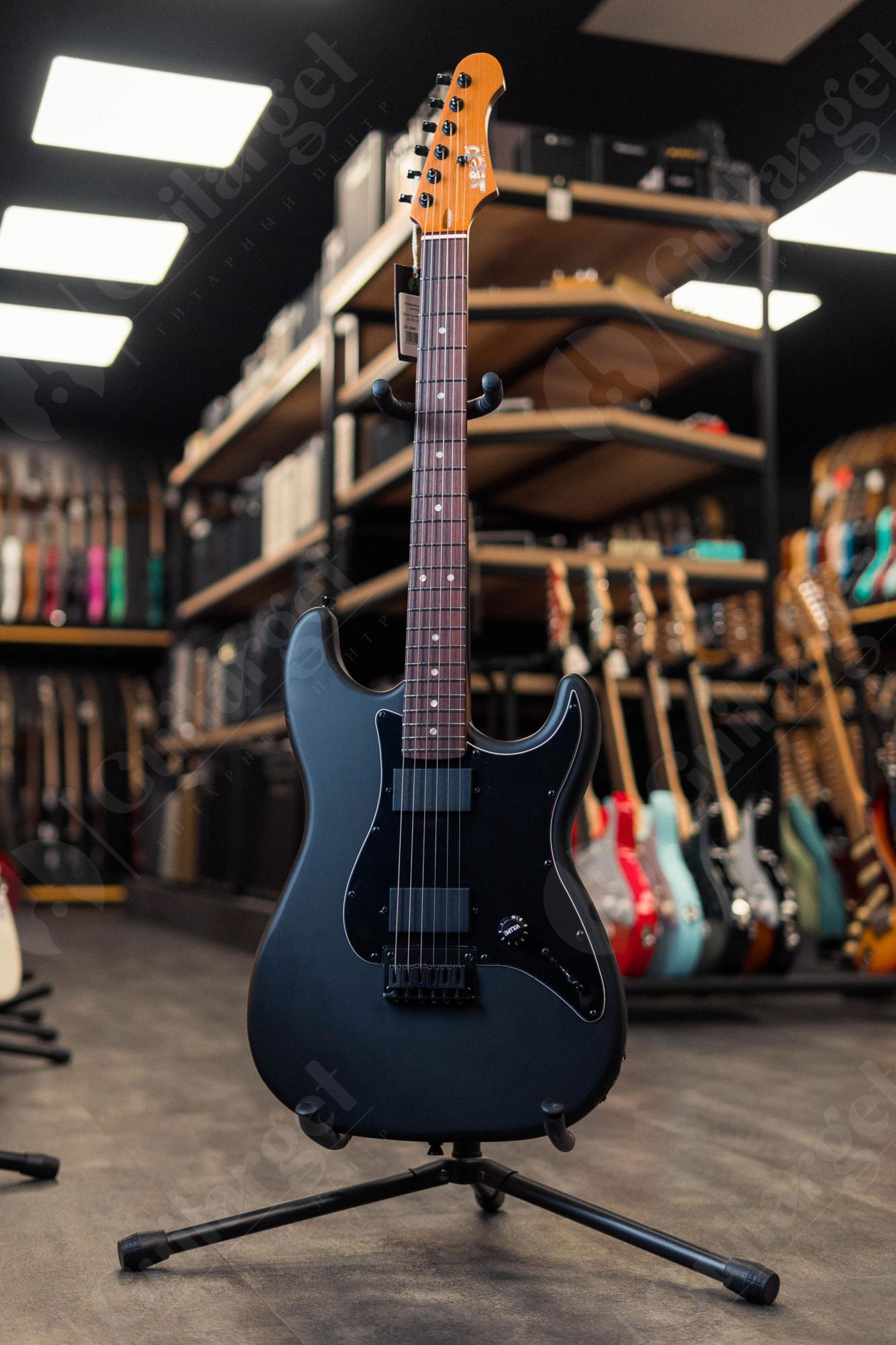 JET JS-400 MBK R - это инструмент с палисандровой накладкой на гриф и 2мя хамбакерами, гитара выполнена в черном матовом цвете. Черная фурнитура дополняет брутальный образ инструмента.