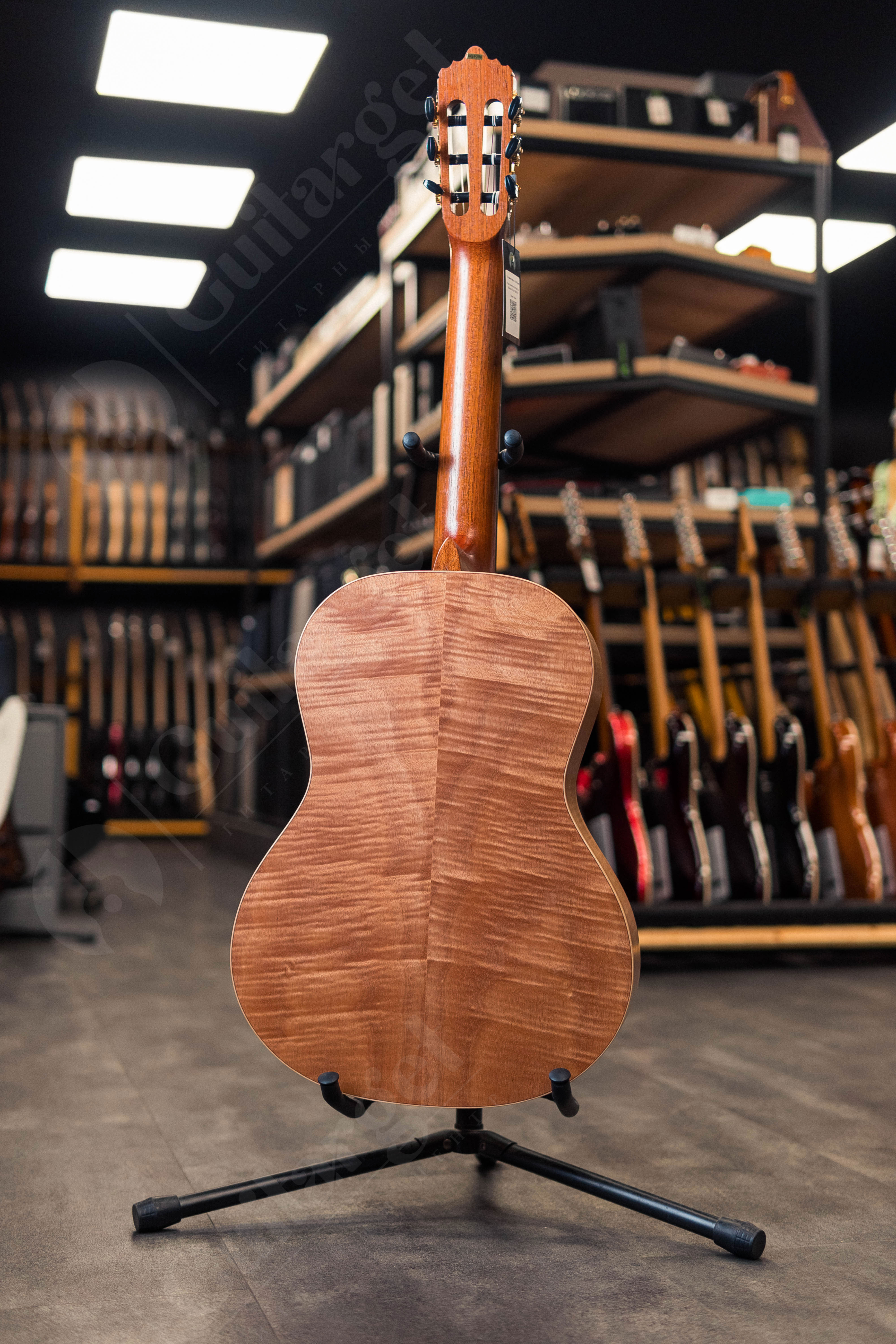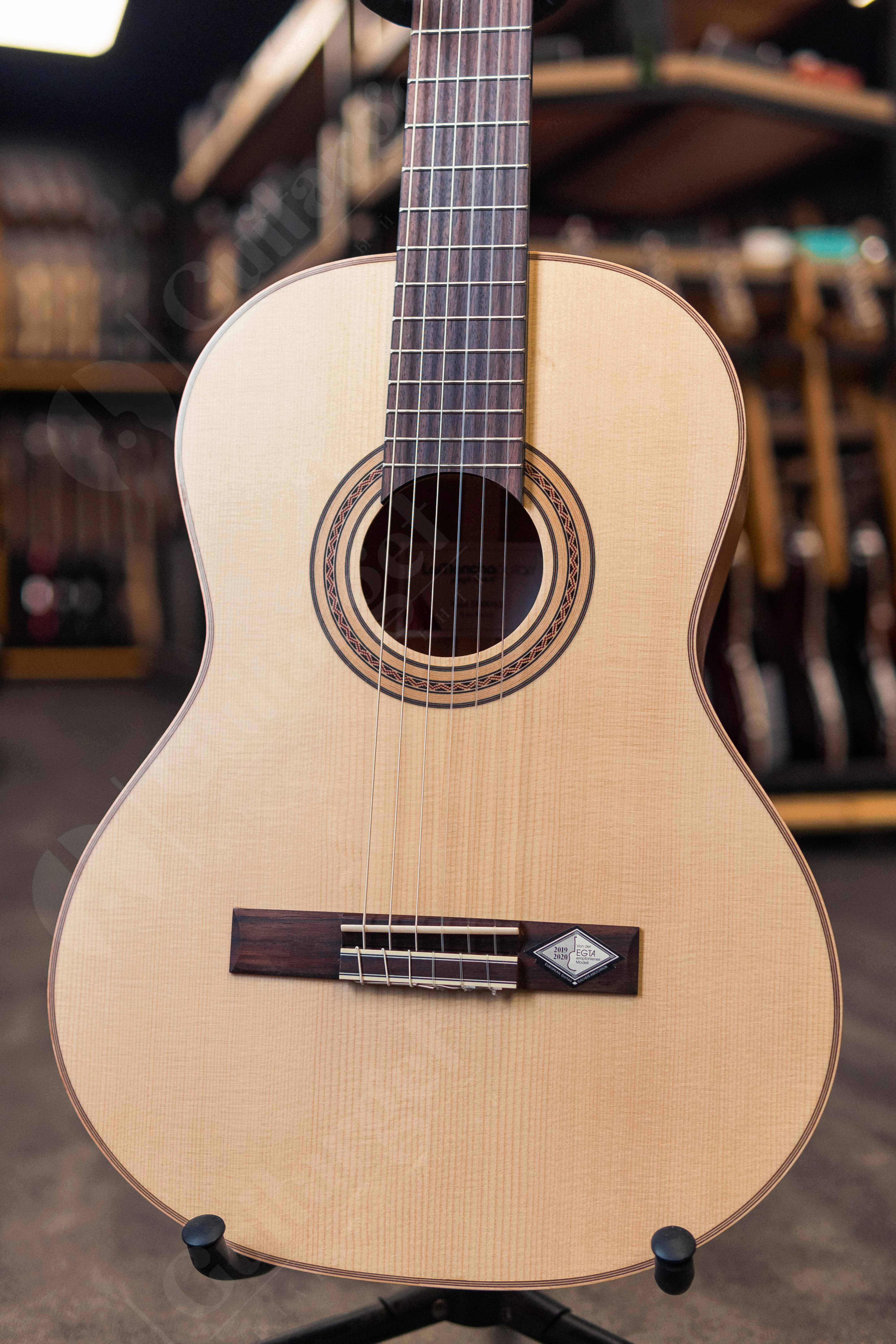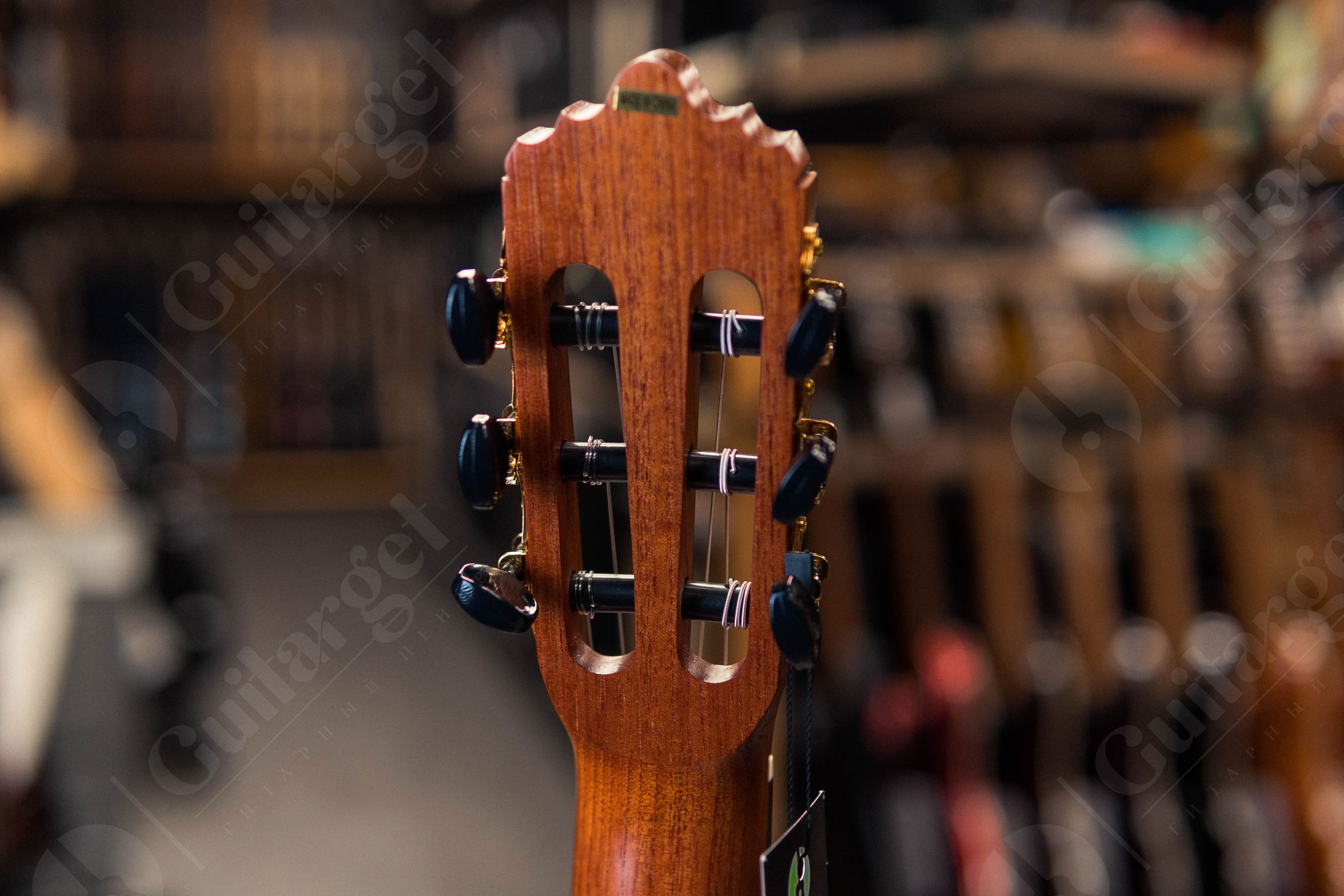 La Mancha Rubi SMX/63 7/8 Classical Guitar - верх из массива немецкой ели - спина и бока из экзотического красного дерева - шейка Toona Kalantas с углеродистой арматурой - испанский шейный сустав шеи - гриф Ovangkol - мостик Ovangkol с двойным отверстием - гайка и седловая кость - струны Savarez Cantiga Mixed Tension 510MRJ, крепления клена - головки из золота, покрытые черными пуговицами - длина шкалы 630 мм