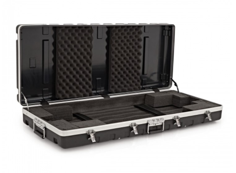 Футляр изготовлен из высококачественного АБС-пластика, который не только легкий, но и очень прочный. Это означает, что ваш инструмент всегда в полной безопасности. Алюминиевые усиливающие пластины придают кейсу дополнительную жесткость. Четыре поворотных замка на передней части просты в использовании и очень прочны.