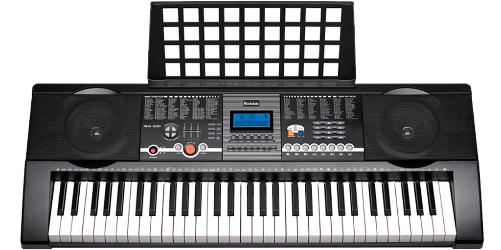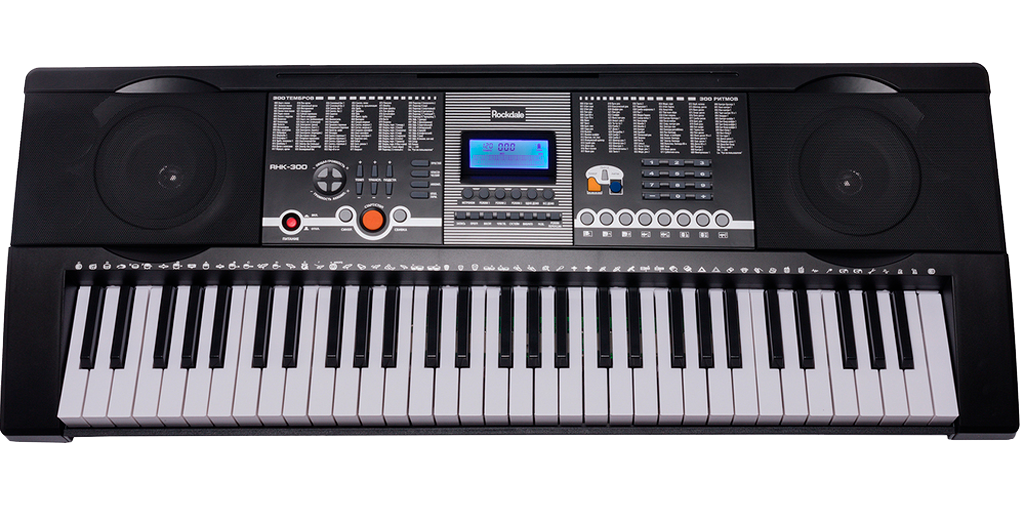 300 тембров: синтезатор ROCKDALE RHK-300 способен воспроизвести звучание 300 разных музыкальных инструментов.