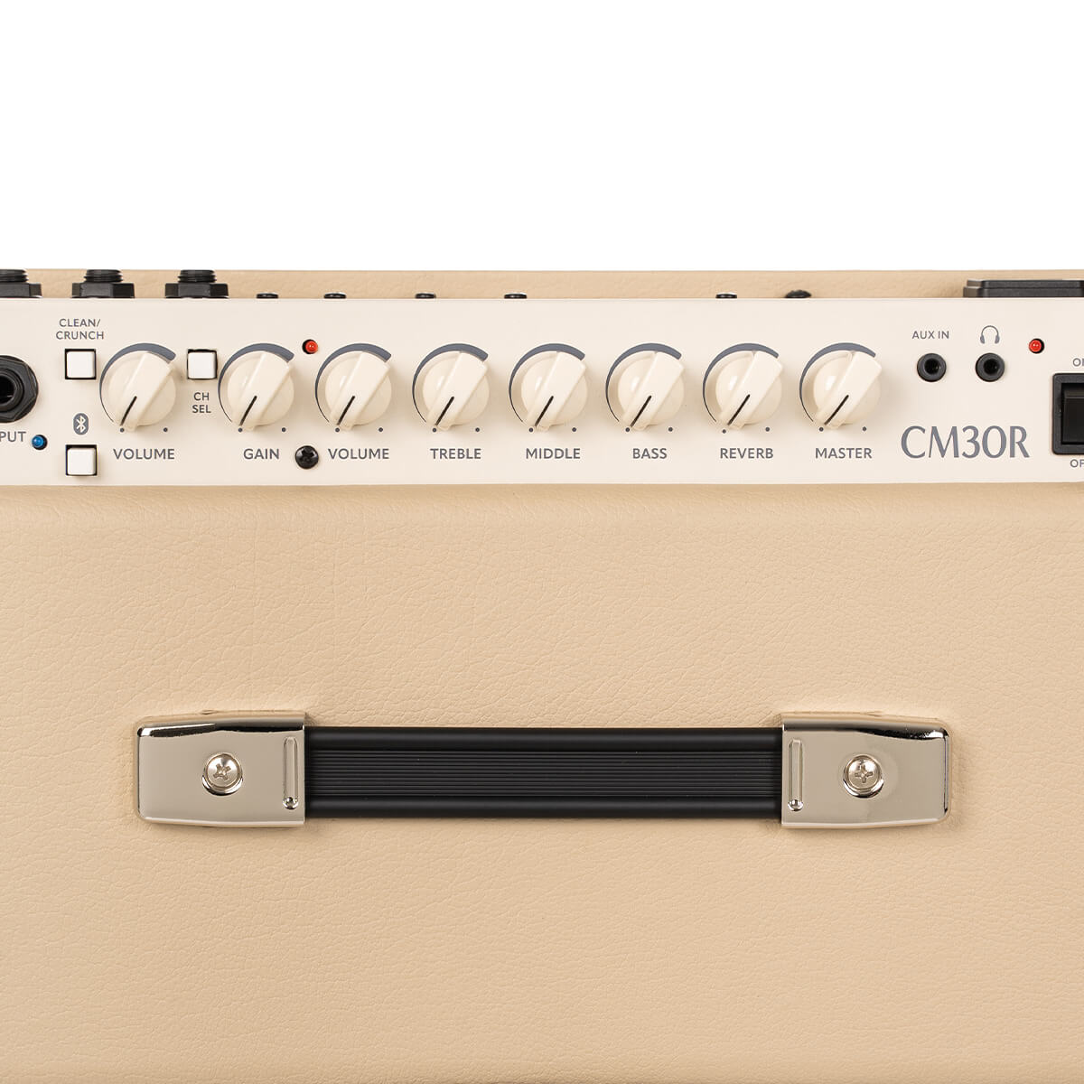Вход AUX позволяет подключить к комбоусилителю смартфон или цифровой плеер и играть вместе с вашей любимой музыкой. Разъем для наушников удобно использовать для вечерних занятий, что делает CM30R универсальным комбиком, который можно использовать в различных игровых ситуациях.