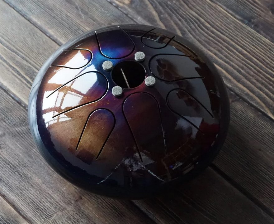 Современный музыкальный инструмент, очень популярный в мире. В разных уголках земли его называют по-своему: (steel drum-стил драм, hang drum- хэнг драм, tongue drum-тонг драм, happy drum-хэппи драм, tank drum-тэнк драм).