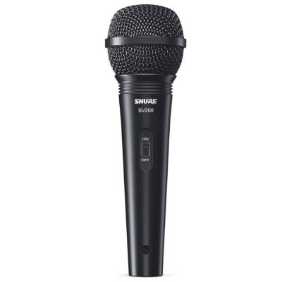Представленная модель вокального микрофона является идеальным решением для исполнителей на непрофессиональной сцене. Модель микрофона с выключателем SHURE SV200-A, благодаря кардиоидной диаграмме направленности способна хорошо принимать звуковой сигнал, при этом производя эффективное подавление нежелательных шумов. Кроме этого, для снижения уровня механических шумов, капсюль вокального микрофона снабжен специальным демпфером, встроенной ветрозащитой и стальной защитной сеткой.