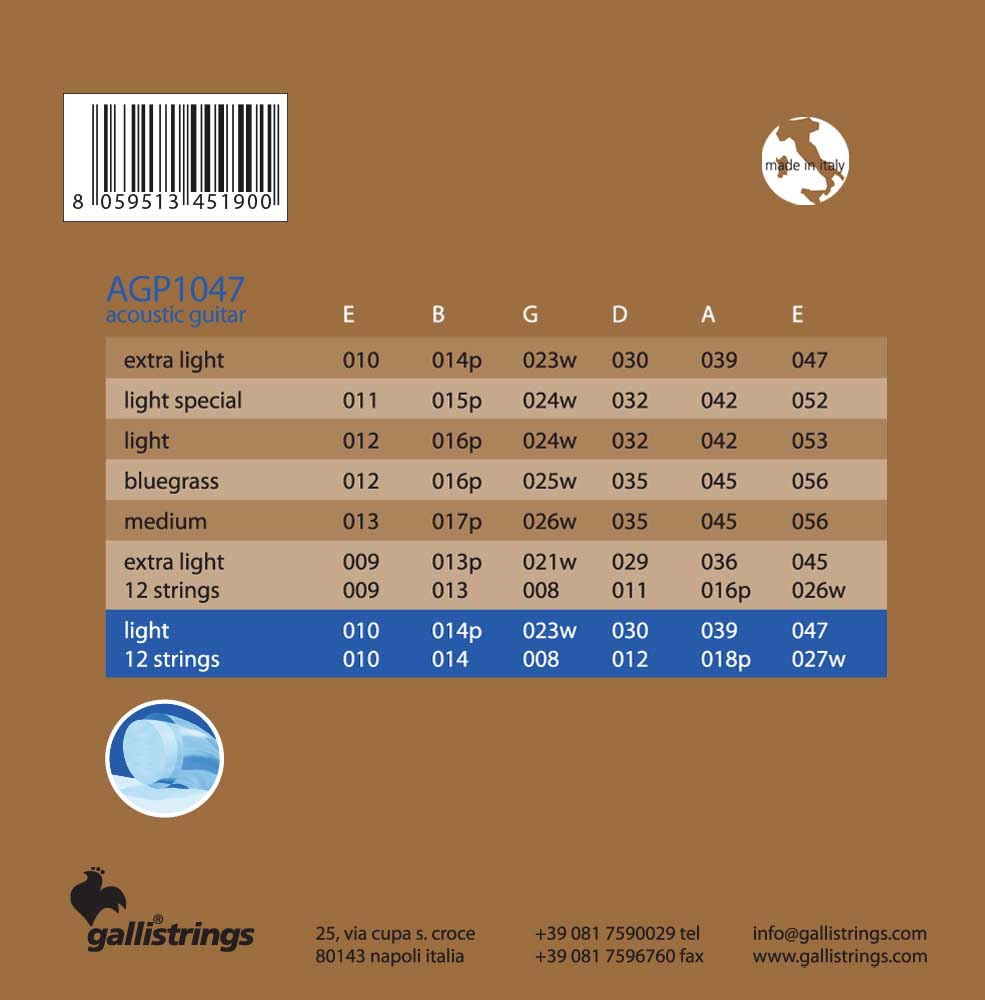 Комплект струн для акустической гитары Galli Strings 10-47 AGP1047-12 (12 струн)