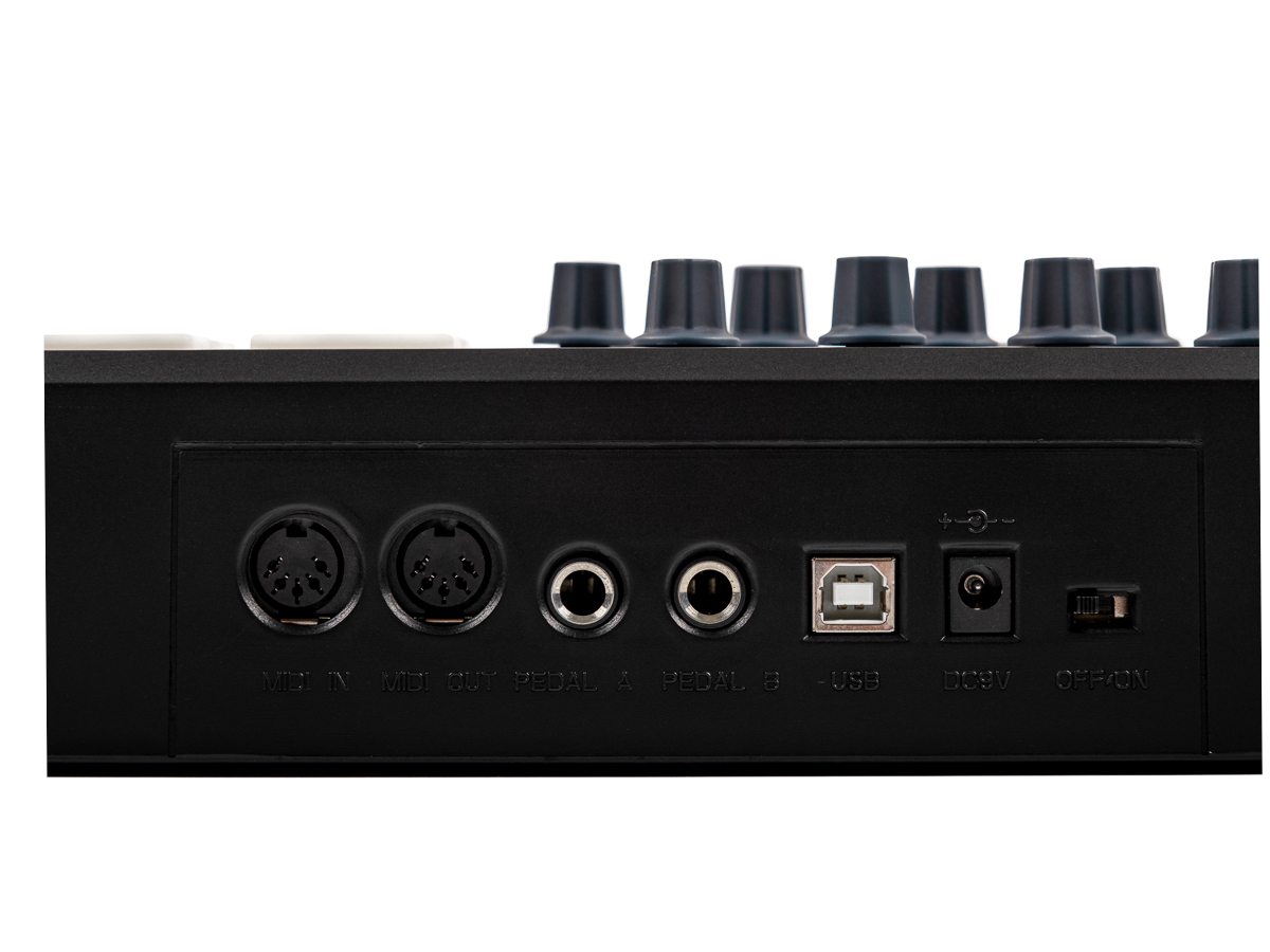 1 разъем MIDI OUT, 1 разъем MIDI IN.